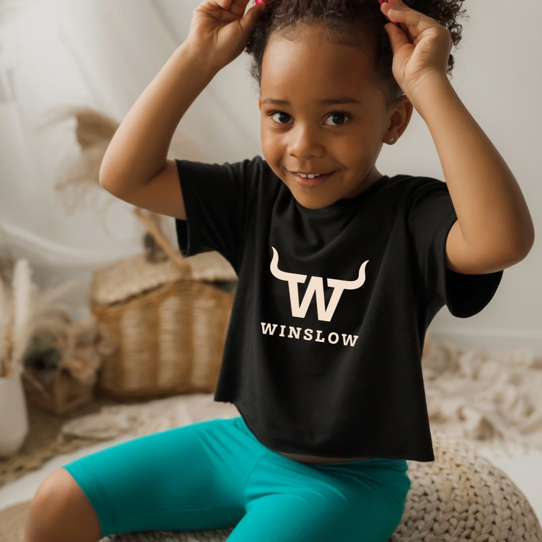 T-shirt crop Winslow noir en bambou pour enfant, grandeurs 2 à 14 ans
