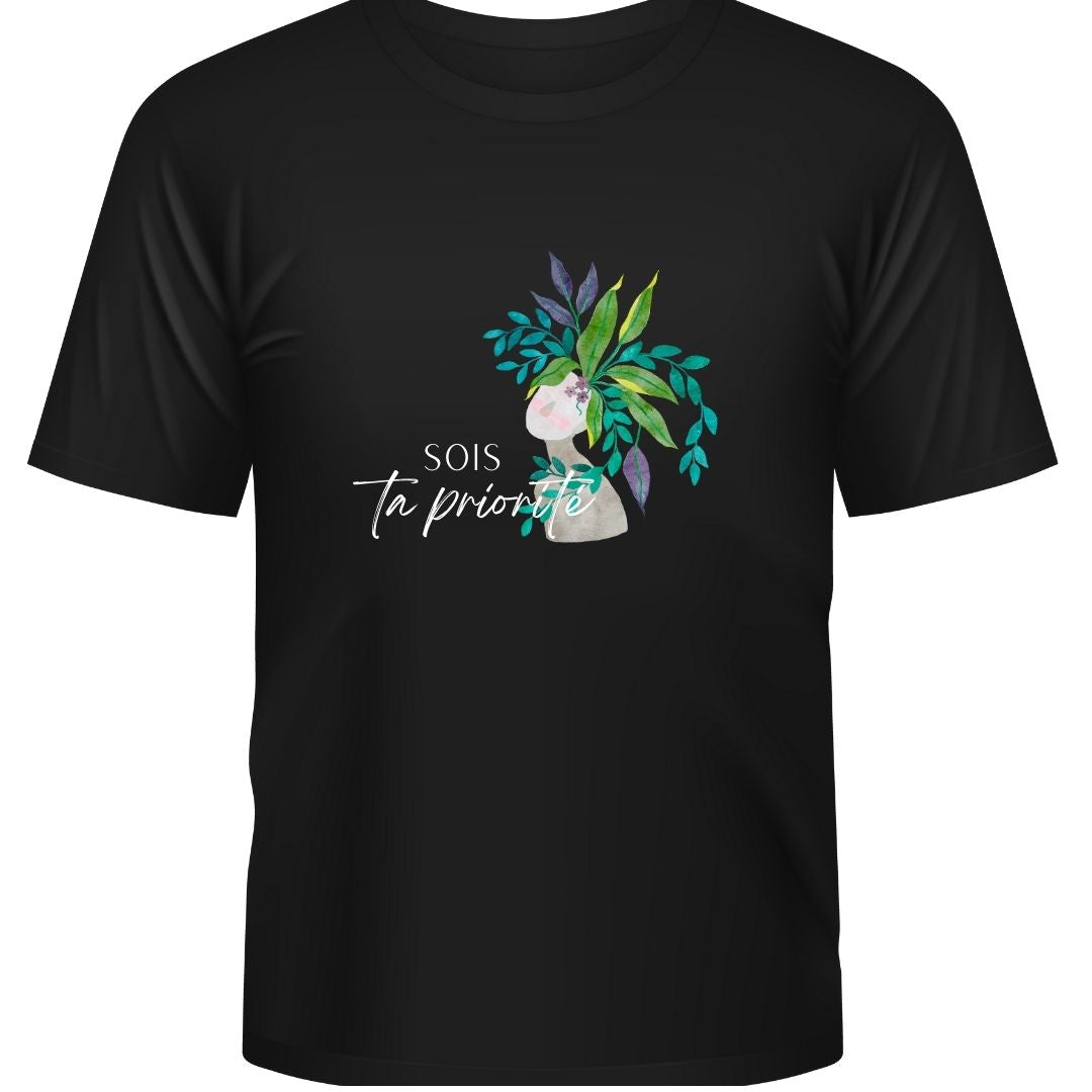 T-shirt Éli unisexe en bambou noir - CEPS - Impression Sois ta priorité