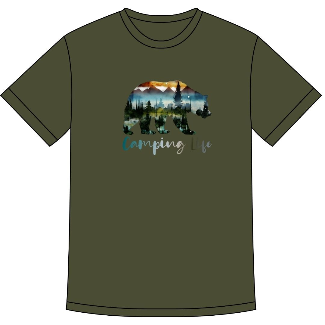 T-shirt Éli unisexe en bambou olive - Imprimé CAMPING LIFE