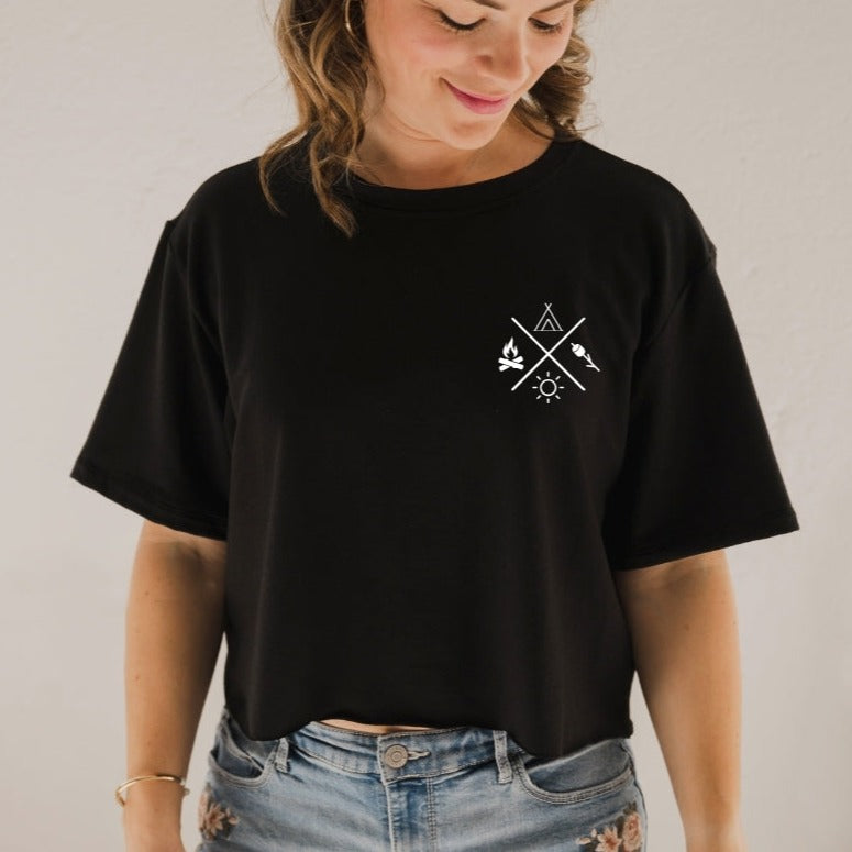 T-shirt Marie crop en bambou noir pour femme - Imprimé Camping X