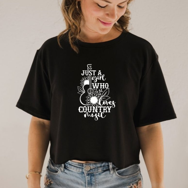 T-shirt Marie crop en bambou noir pour femme - Imprimé Country music