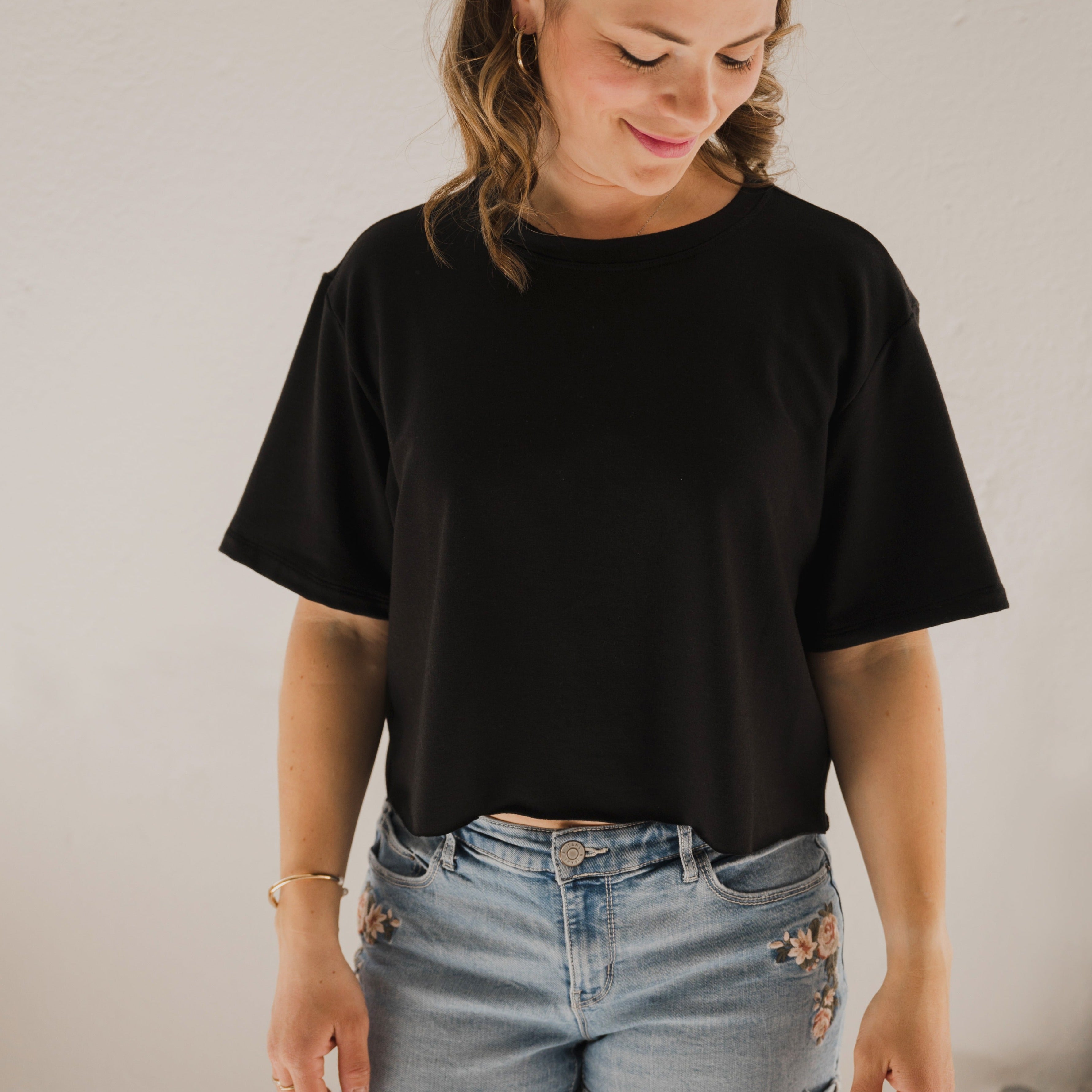 Que ce soit pour une journée en ville, une escapade à la plage ou une soirée entre amis, le Chandail crop à manche courte en bambou de MomMe & Cie est le choix idéal pour rester élégante et confortable tout au long de la journée.