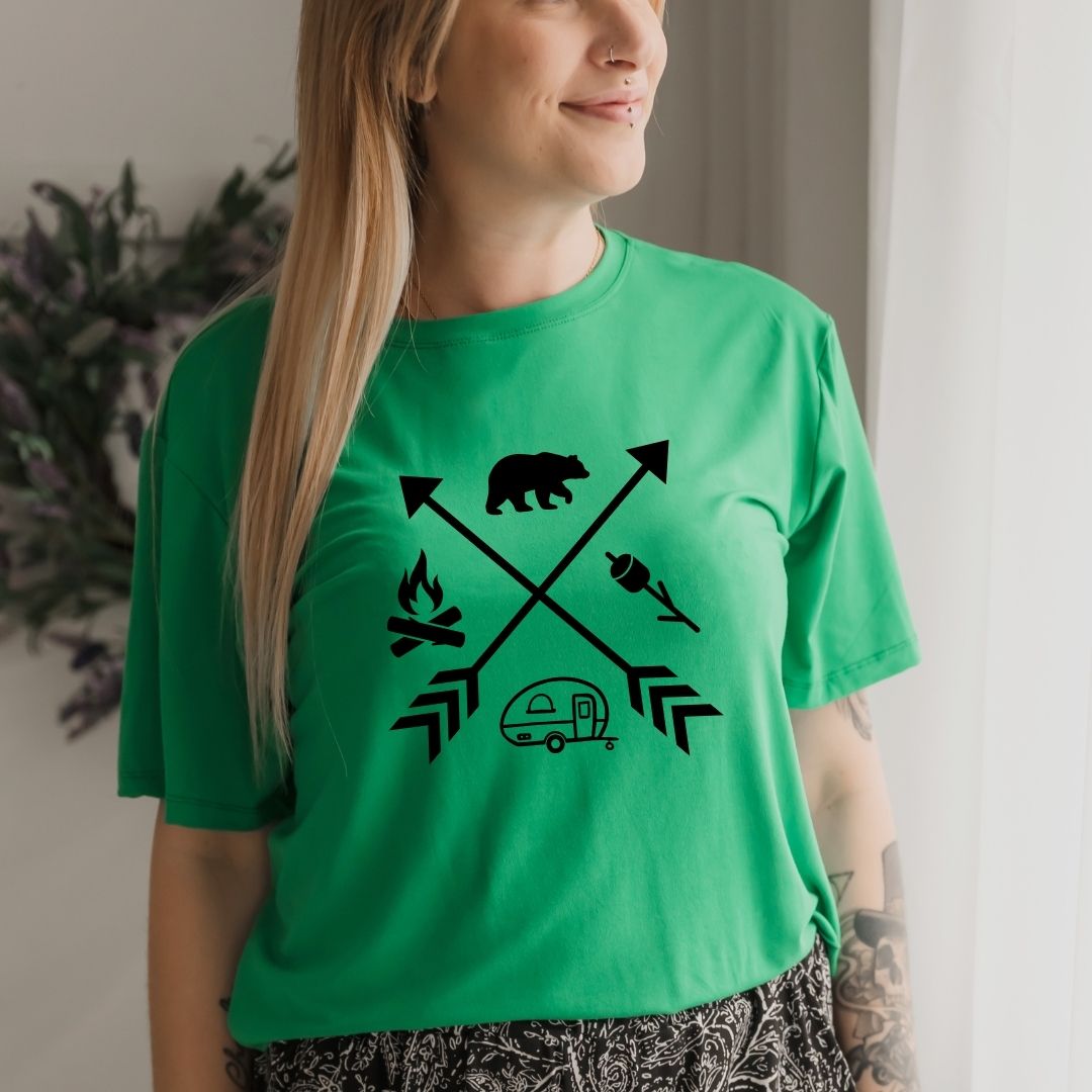 T-shirt Marie crop en bambou vert trèfle pour femme - Imprimé CAMPING X