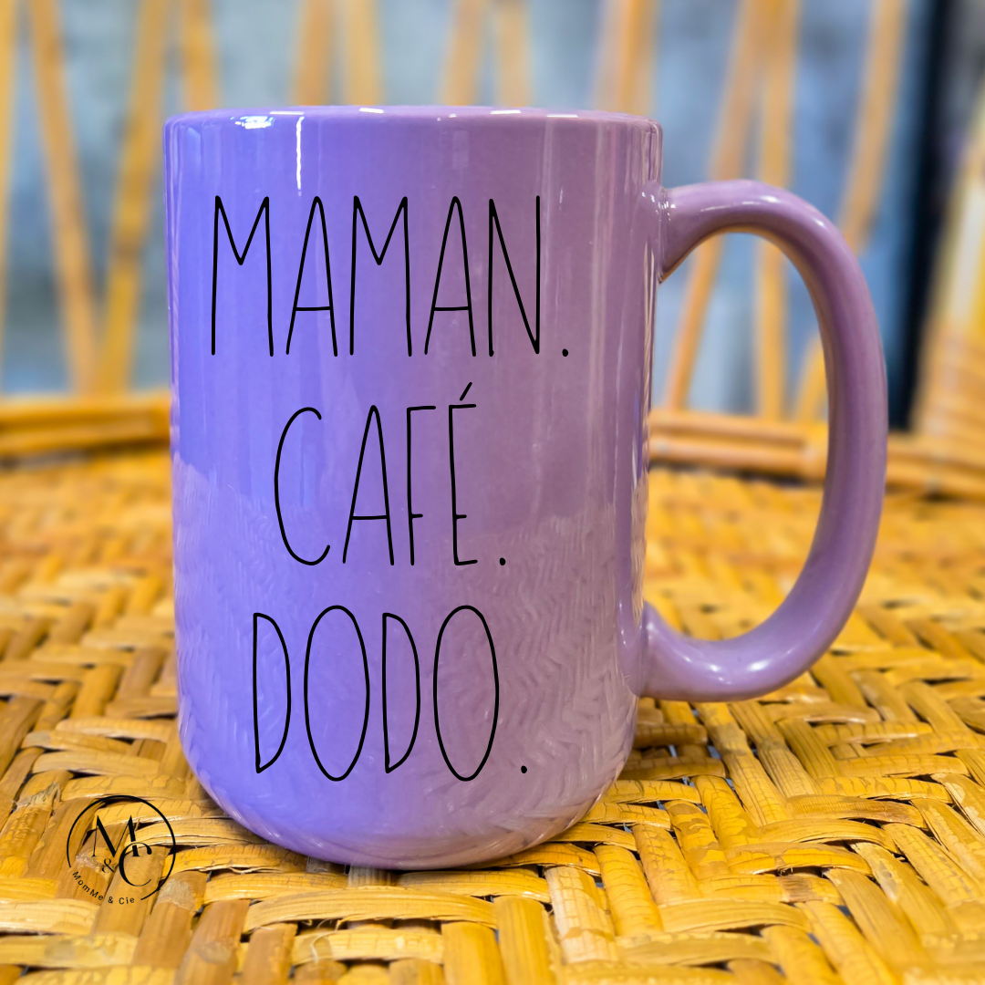 Tasse en céramique 15 oz - couleurs variées - Maman. Café. Dodo.