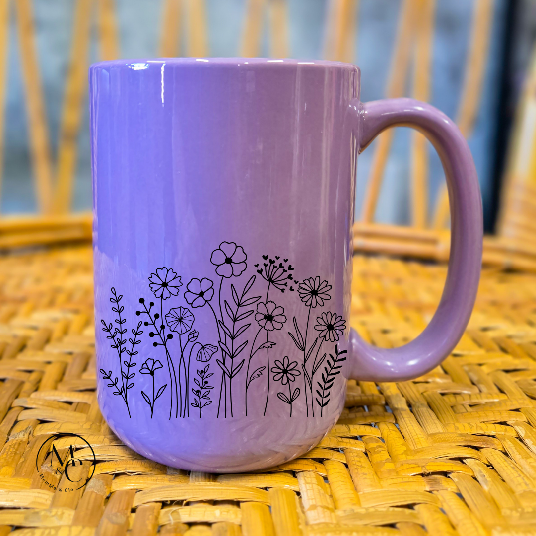 Tasse en céramique 15 oz - couleurs variées - Petites fleurs noires