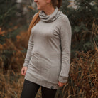 Son col ample et drapé apporte une touche élégante et réconfortante, idéale pour les journées plus fraîches. Sa coupe allongée permet de la porter aussi bien avec un legging qu’un jean, pour un look à la fois simple, féminin et pratique.