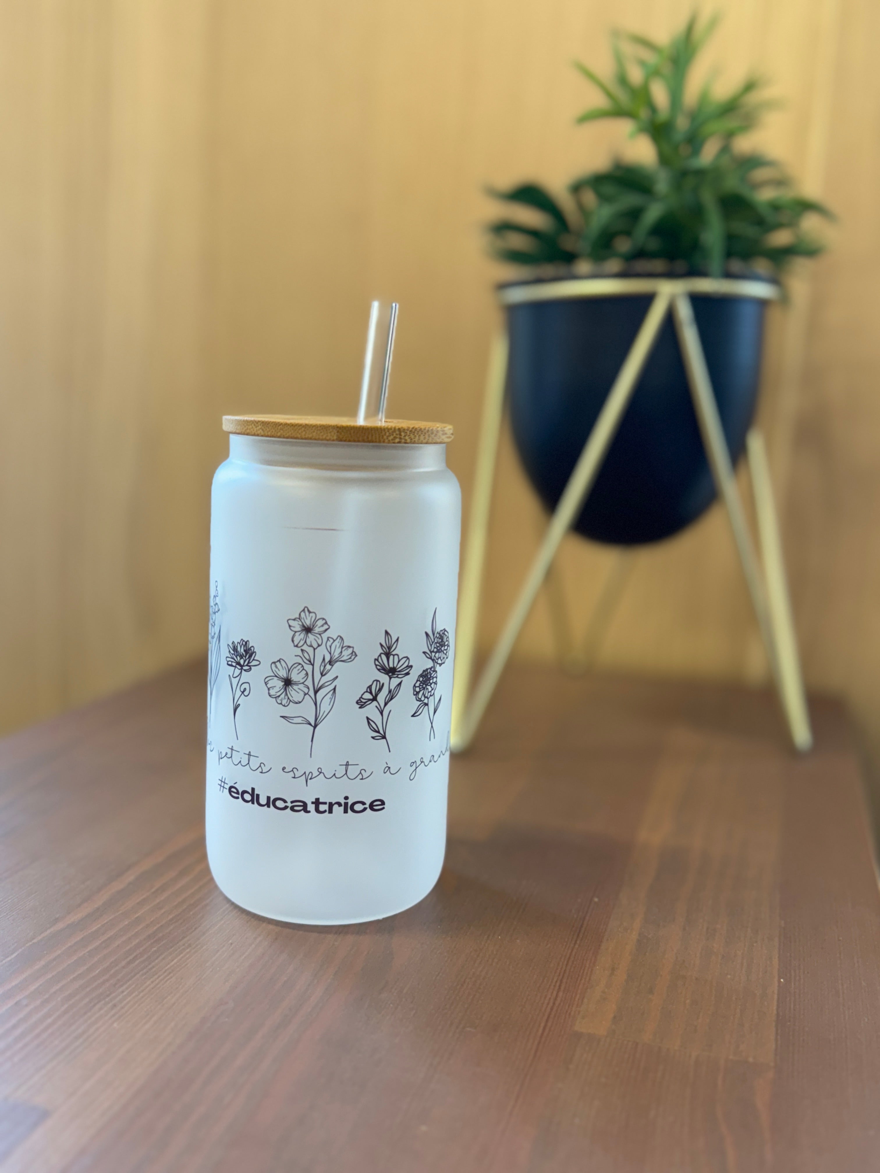 Découvrez notre verre en verre givré 16 oz, accompagné d'un couvercle en bambou et d'une paille en verre, conçu spécialement pour les enseignantes et éducatrices dévouées. Gracieusement gravée sur le verre, la phrase "AIDE LES PETITS ESPRITS À GRANDIR" incarne la mission noble de ceux qui cultivent le savoir et l'épanouissement chez les jeunes esprits en développement.