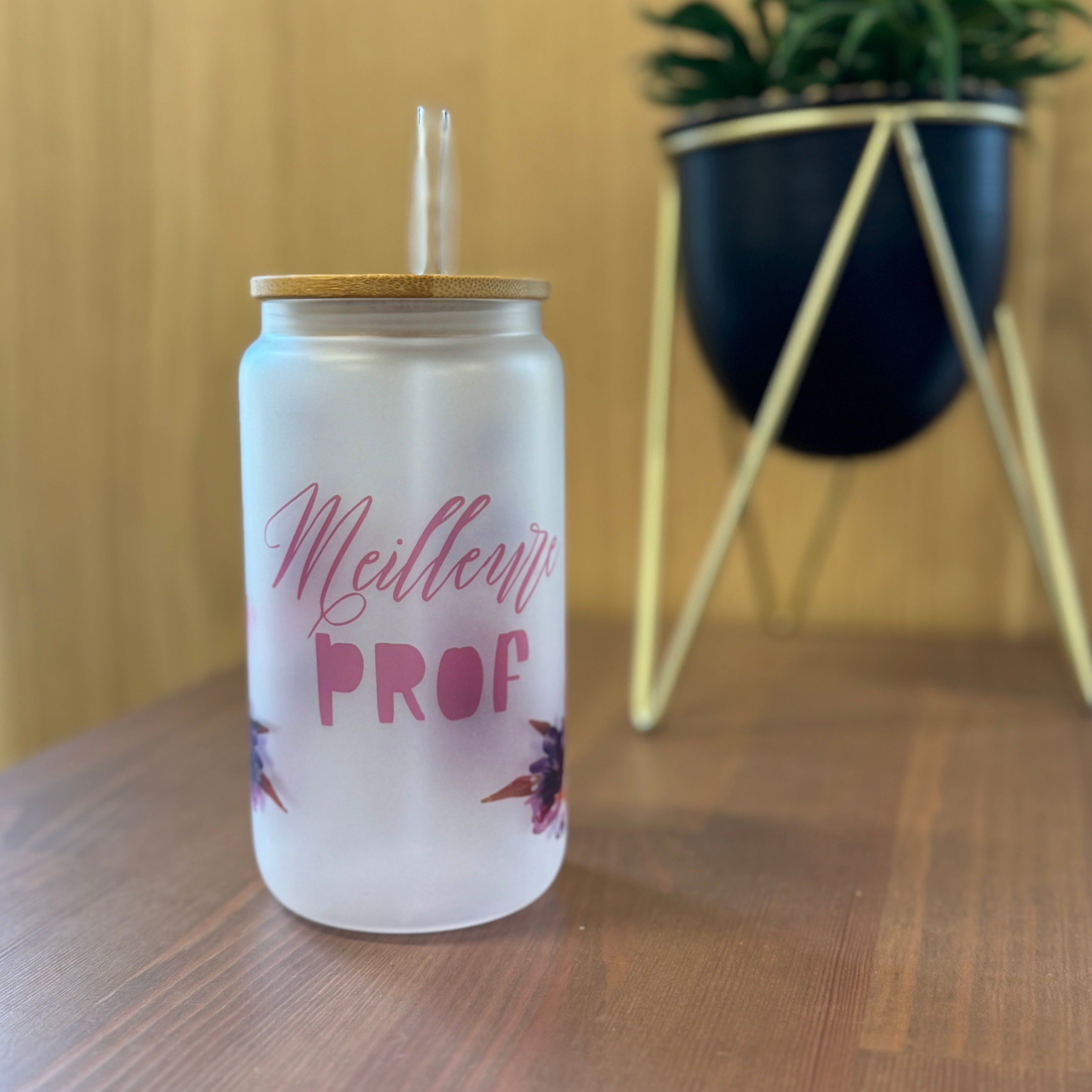Découvrez notre verre en verre givré 16 oz, accompagné d'un couvercle en bambou et d'une paille en verre, créé spécialement pour honorer la meilleure enseignante ou éducatrice.