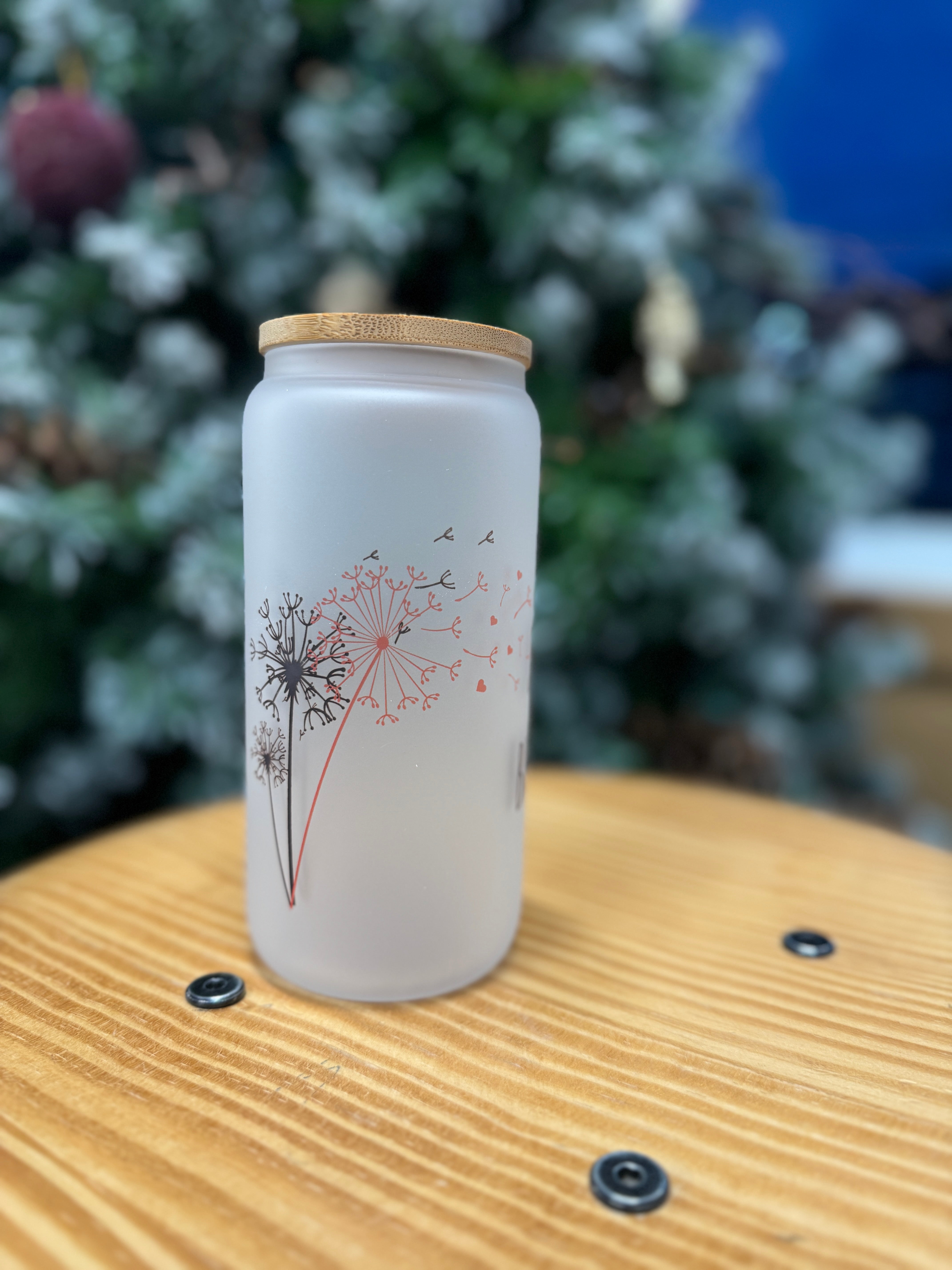 Verre en verre givré 16 oz avec couvercle en bambou et paille - Just Breathe